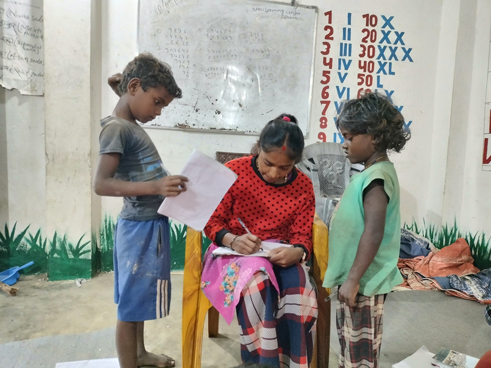 CLCs provide a safe, informal introduction to learning for children not yet in school. Once enrolled, they continue to receive extra tuition and homework support — vital assistance that many parents, often illiterate themselves, are unable to provide. The tutors are older students who receive modest stipends from Pipal Tree, which help cover their own college costs.
